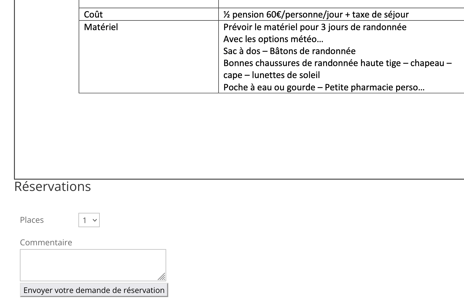 - la réservation de place est soumise à approbation (échanges de mail entre le demandeur et l’administrateur).