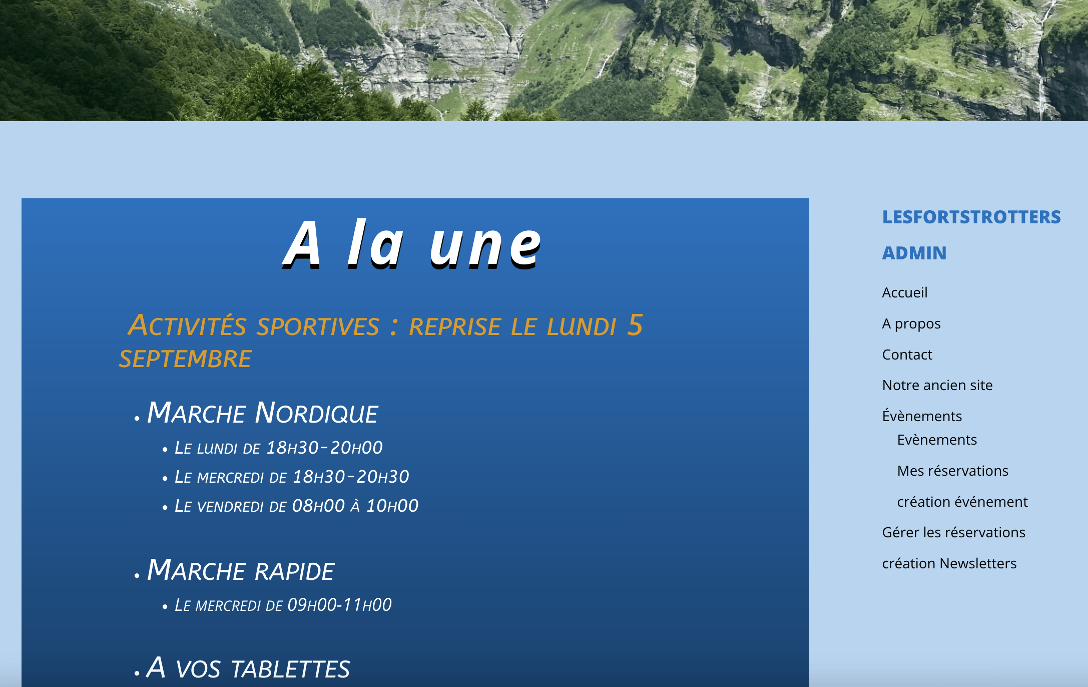- la home page est enrichie d’une zone dite « à la une » dans laquelle l’association pourra préciser les éléments marquants de la vie de l’association.