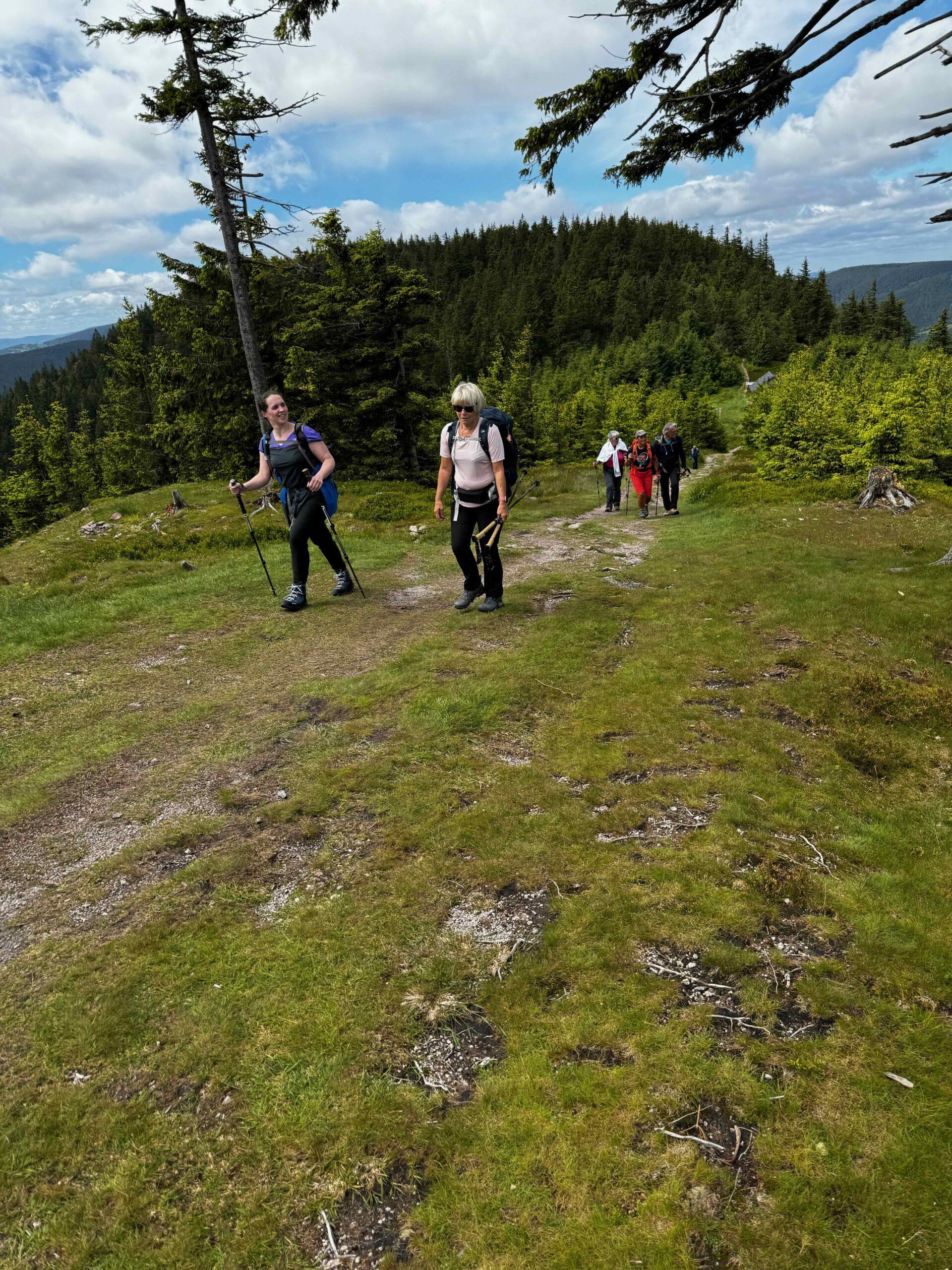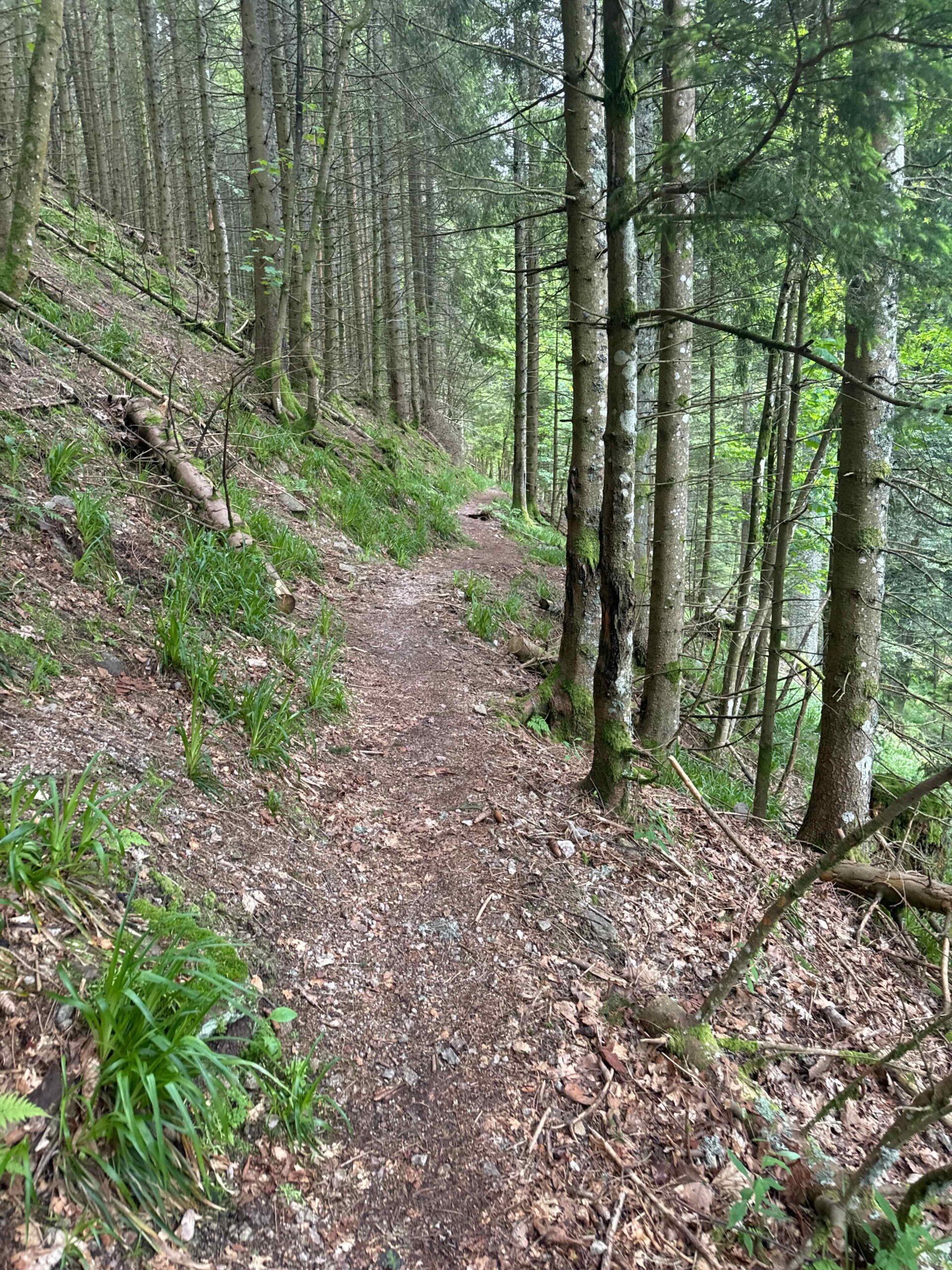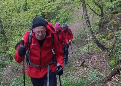 première partie de la montée avec tout le groupe, les plus lents forment un groupe séparé qui ne fera pas la deuxième montée très raide et nous rejoindra par un autre chemin au point de pic-nique.