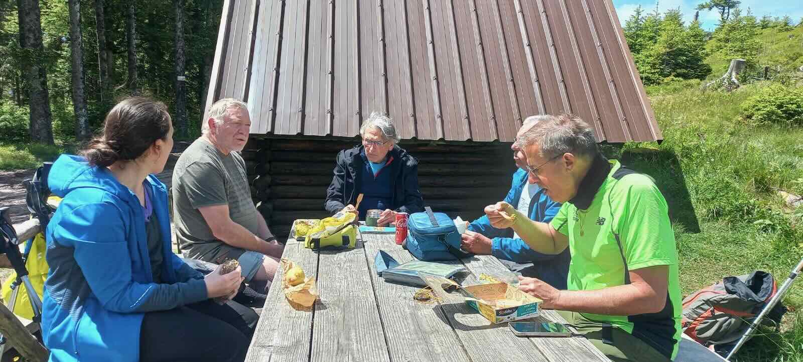 on mange tous ensemble, l’autre groupe (4 personnes) nous rejoint par un autre chemin (celui qui nous permettra tous de repartir)