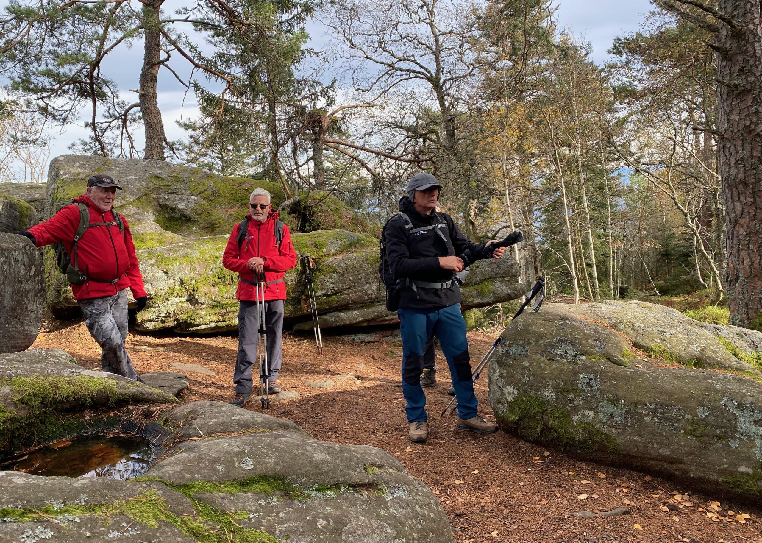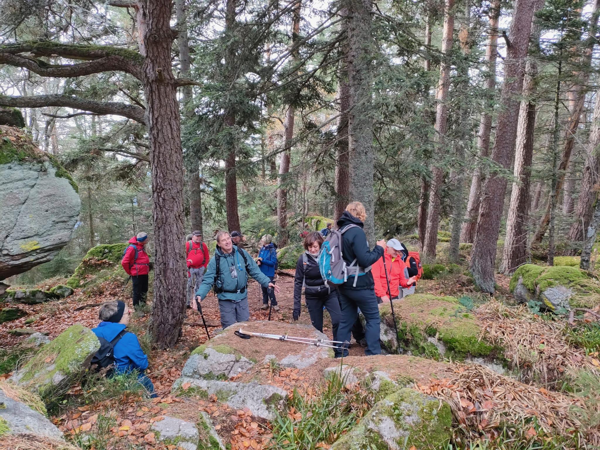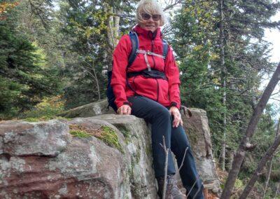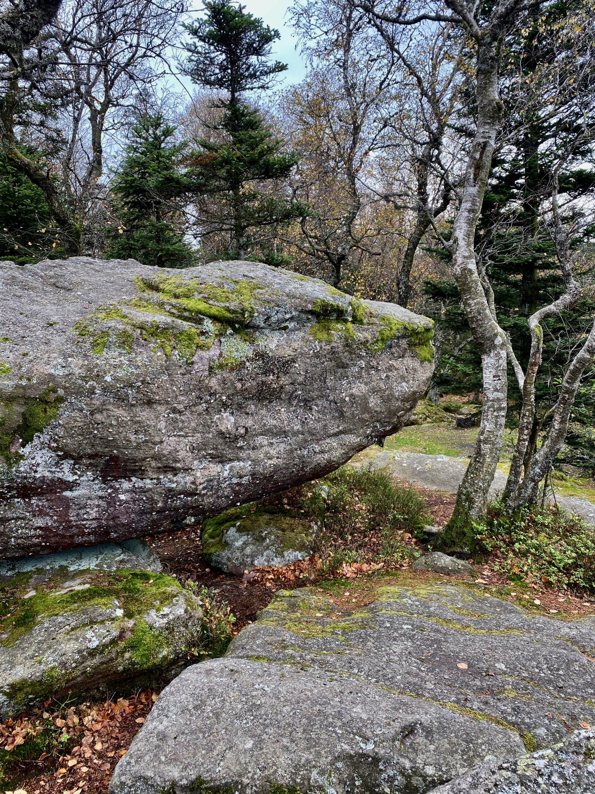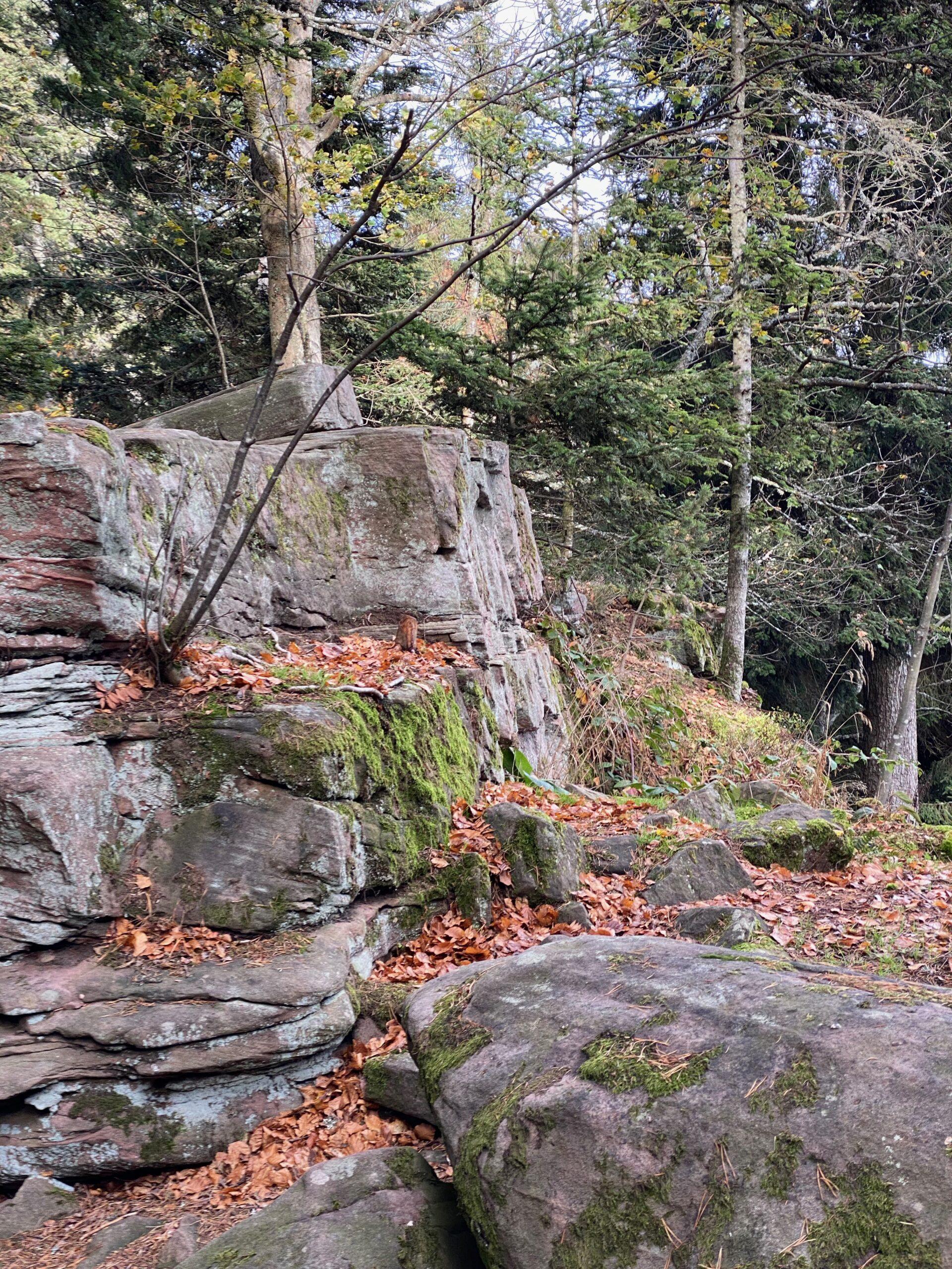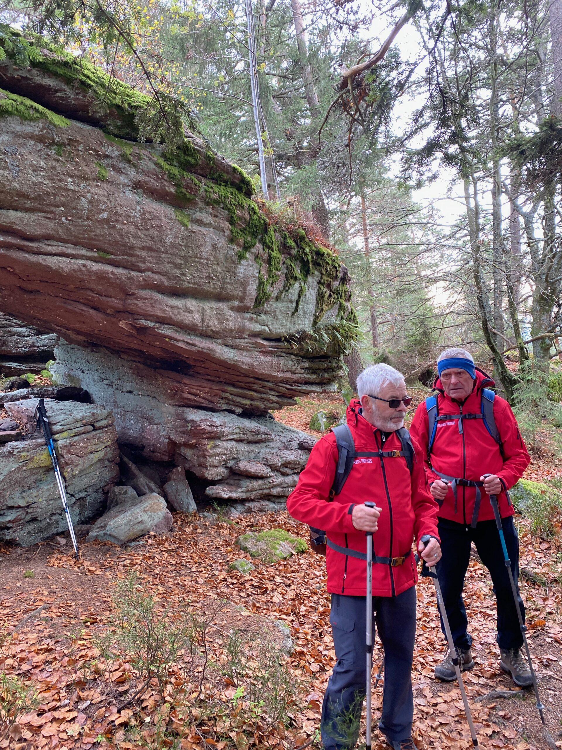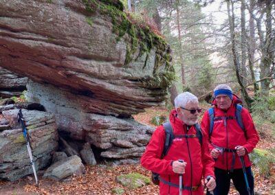 Le rose comme la couleur des nombreux et spectaculaires blocs de grès des Vosges rencontrés ce jour ; blocs façonnés par les éléments il y a plus de 2000 ans. Si la dénomination de la roche du Diable, au-dessus de la vallée d’Abreschwiller, est plutôt à chercher dans les croyances populaires, le Calice quant à lui, il suffit de le regarder pour comprendre.