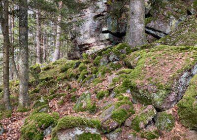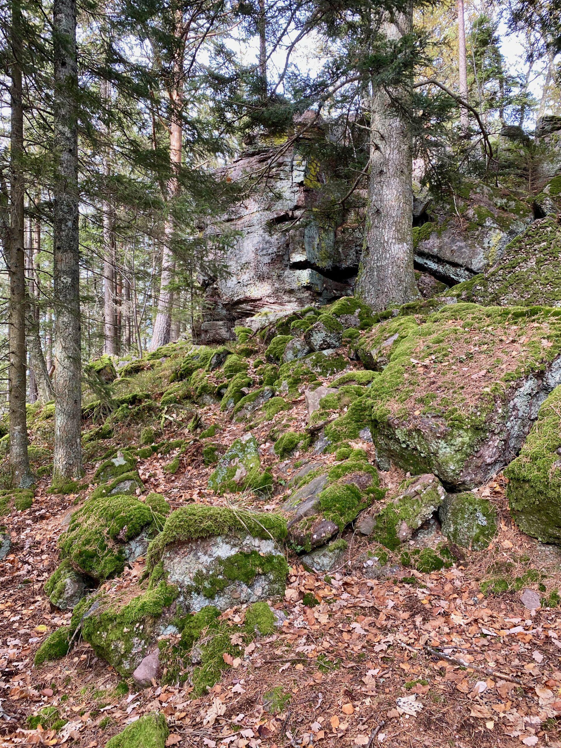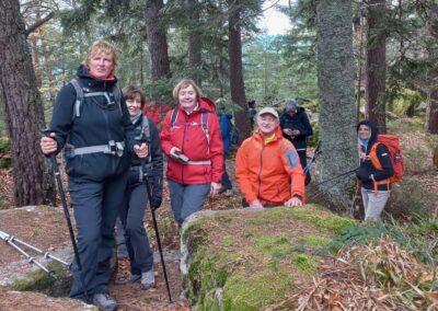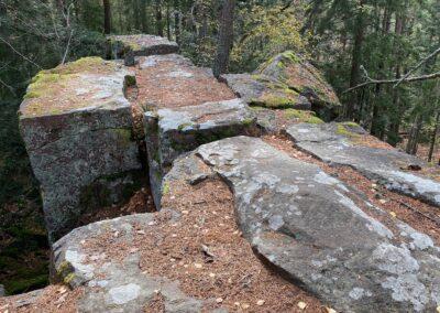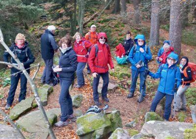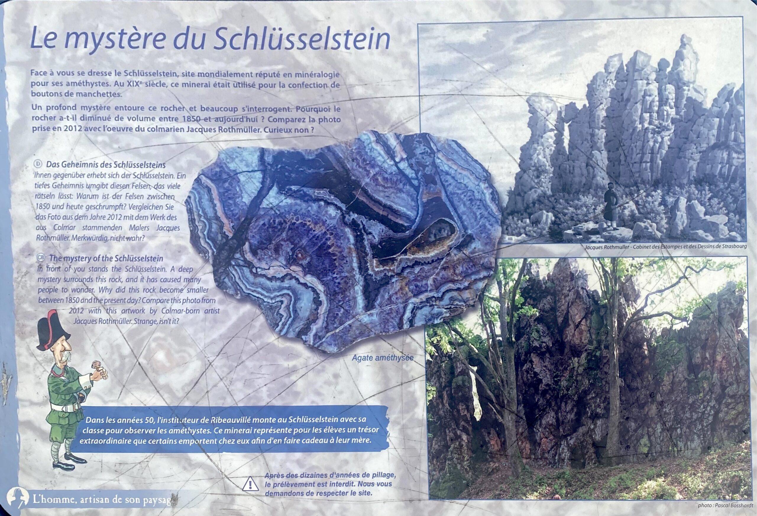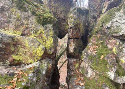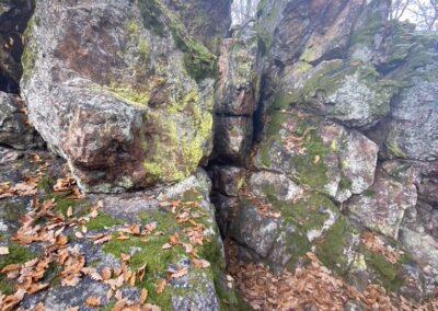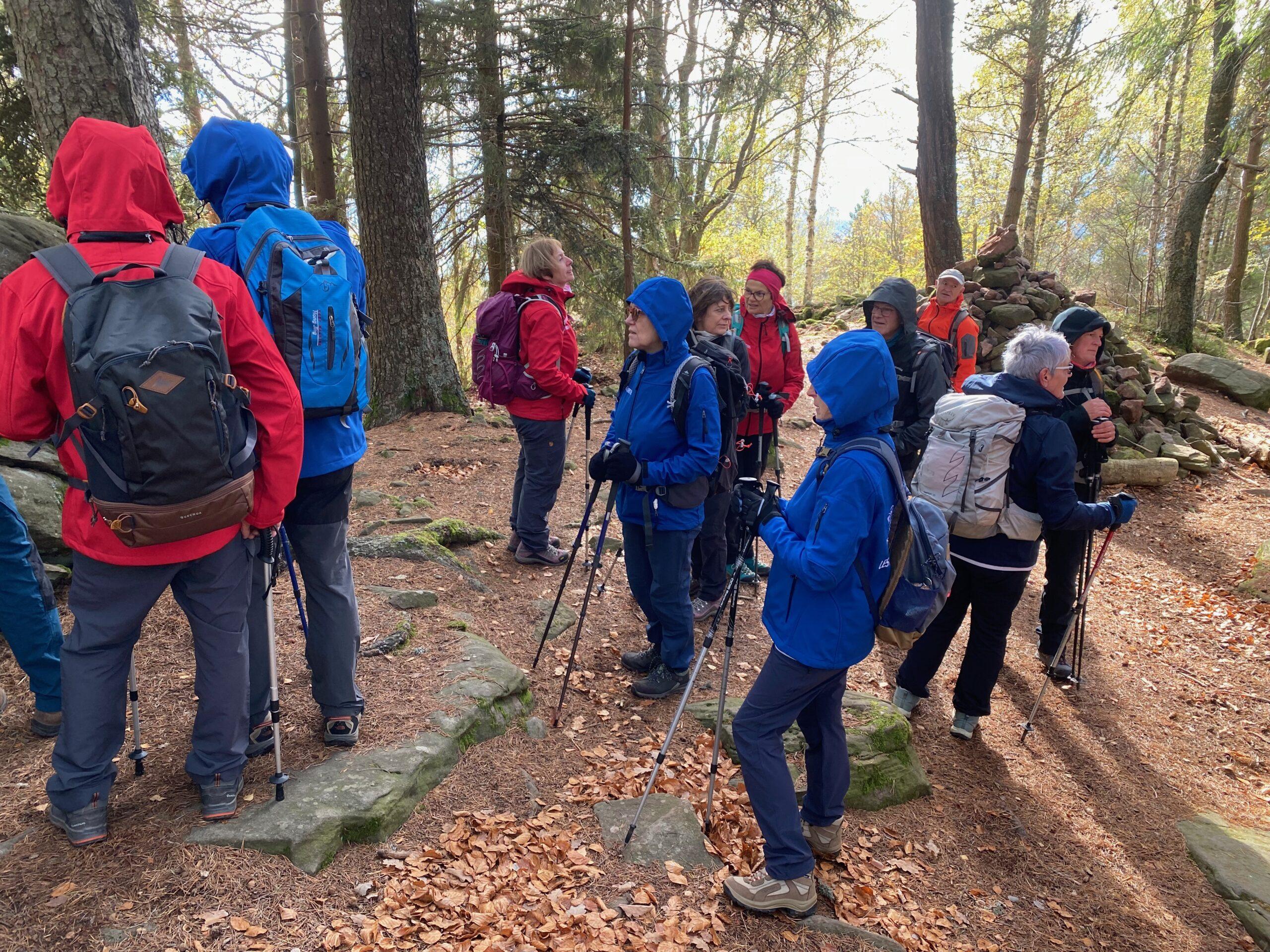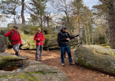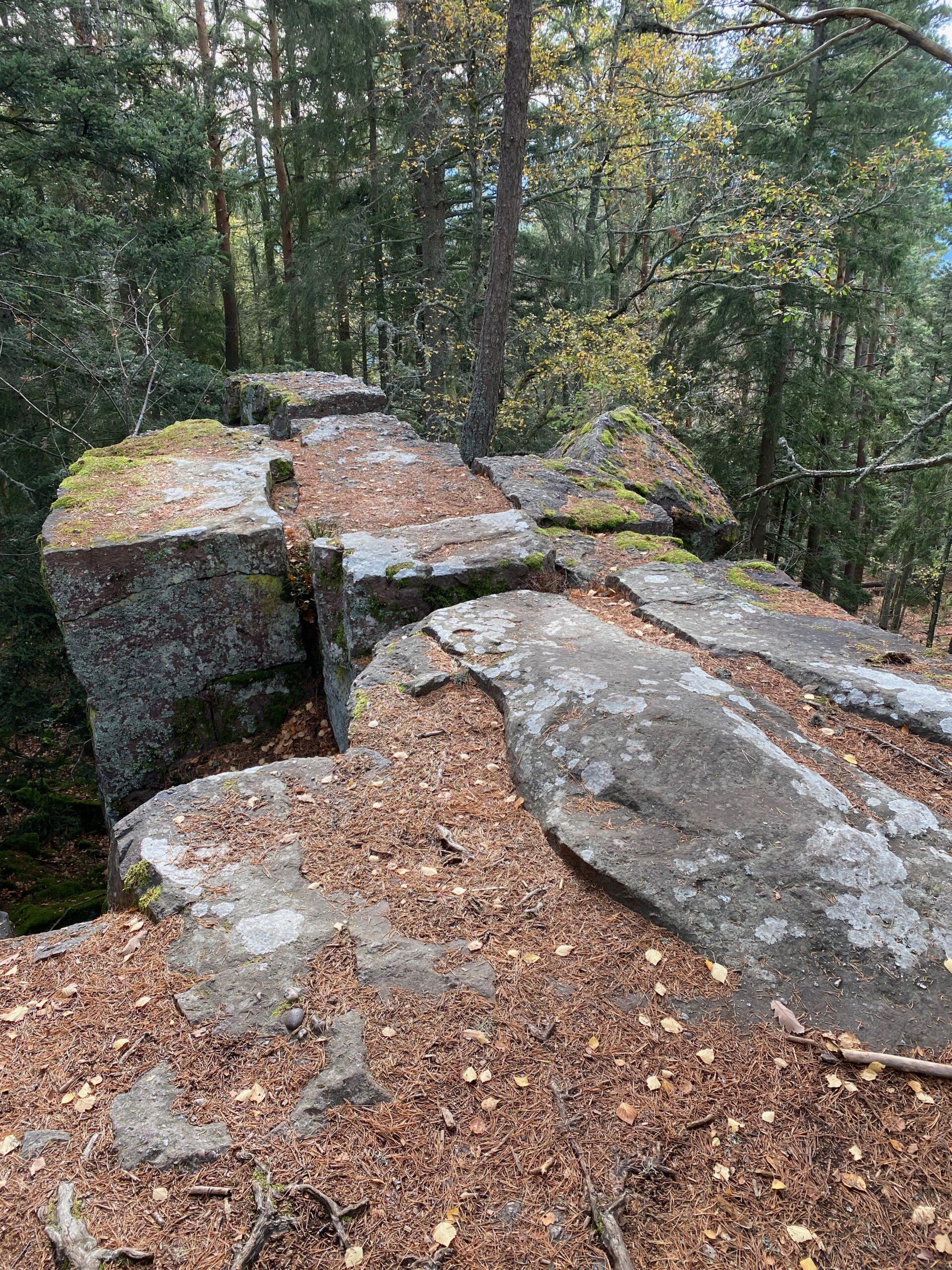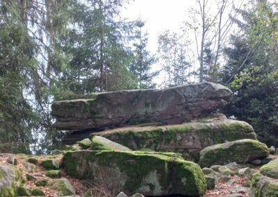 Le rose comme la couleur des nombreux et spectaculaires blocs de grès des Vosges rencontrés ce jour ; blocs façonnés par les éléments il y a plus de 2000 ans. Si la dénomination de la roche du Diable, au-dessus de la vallée d’Abreschwiller, est plutôt à chercher dans les croyances populaires, le Calice quant à lui, il suffit de le regarder pour comprendre.