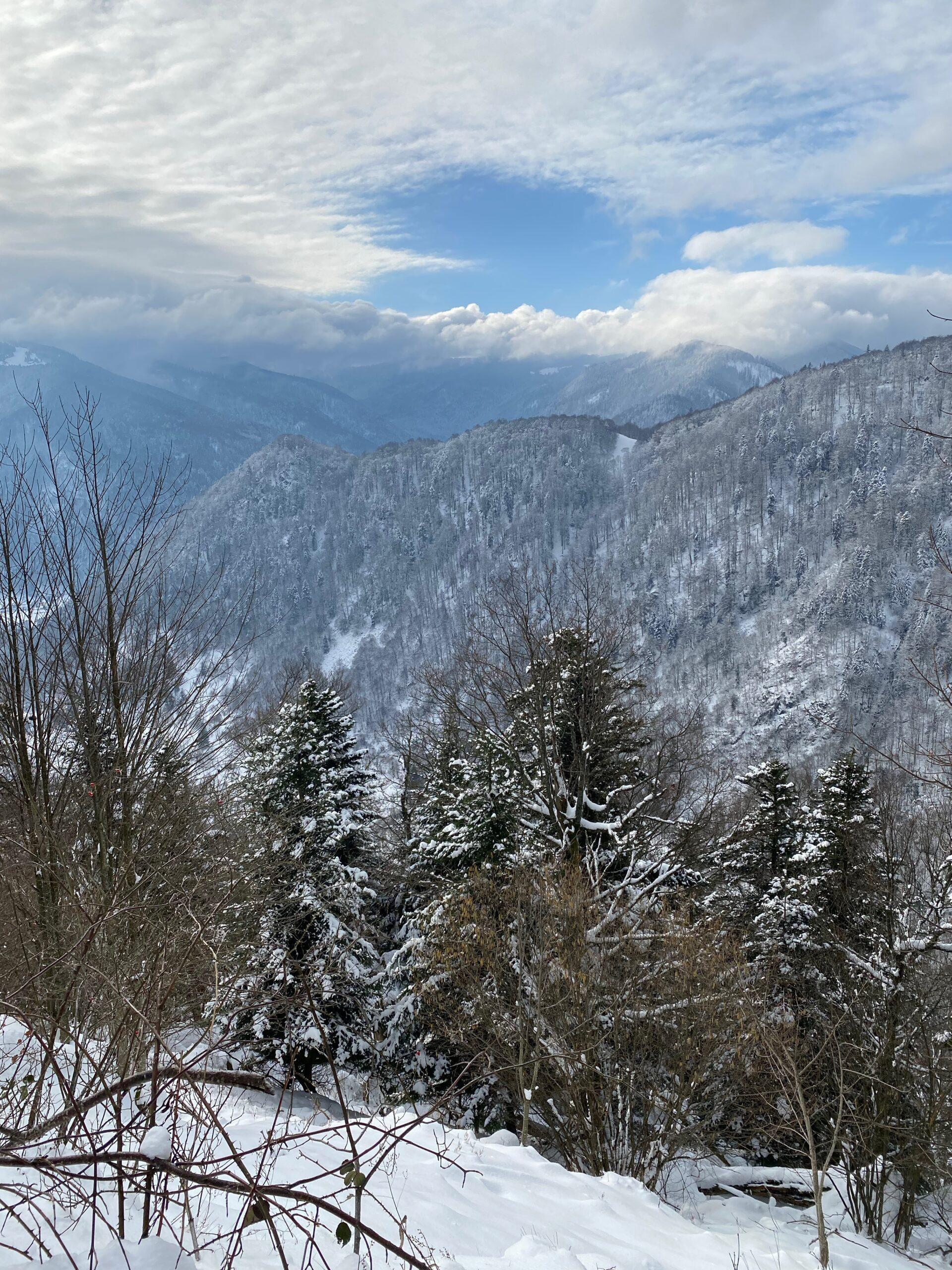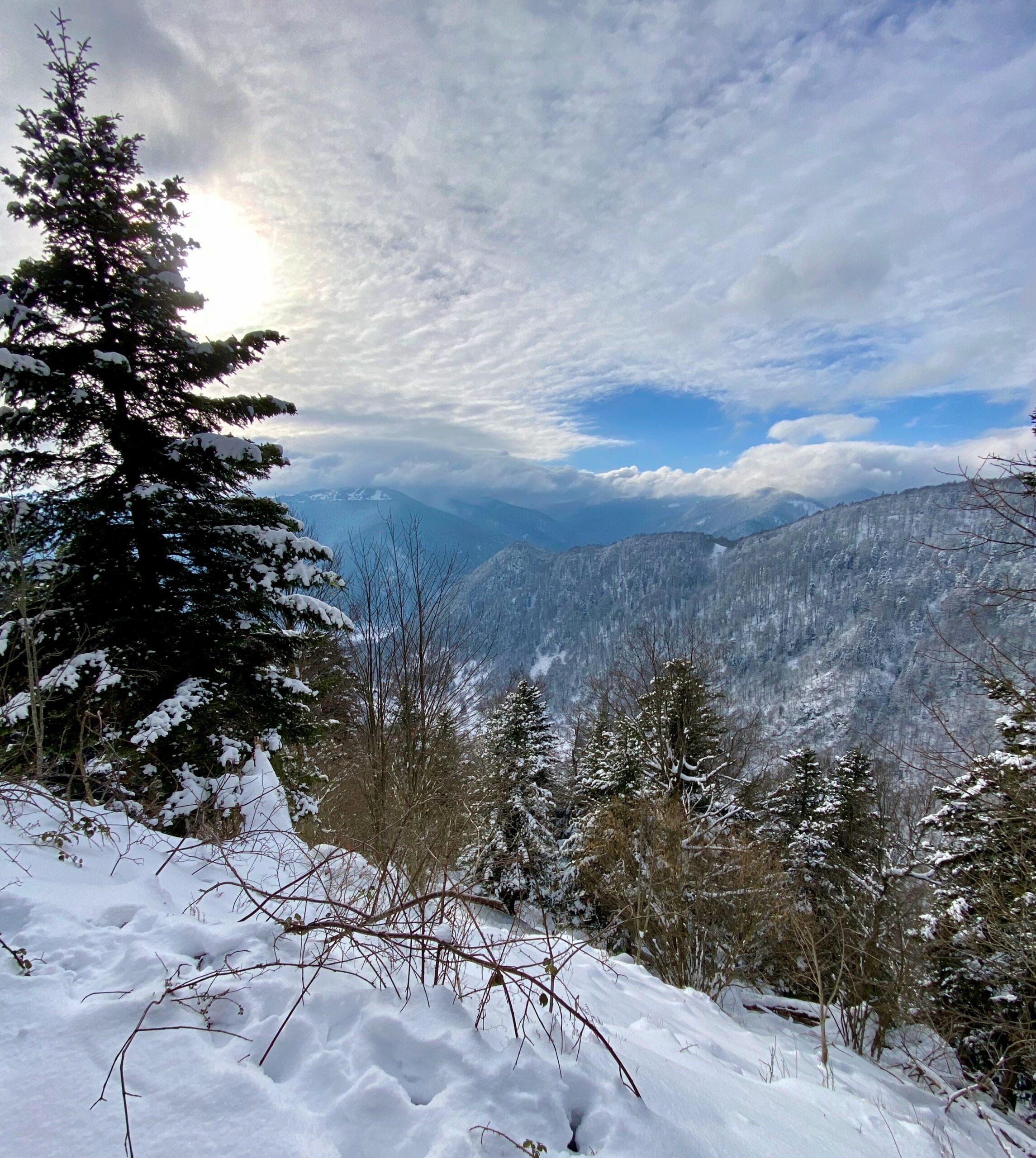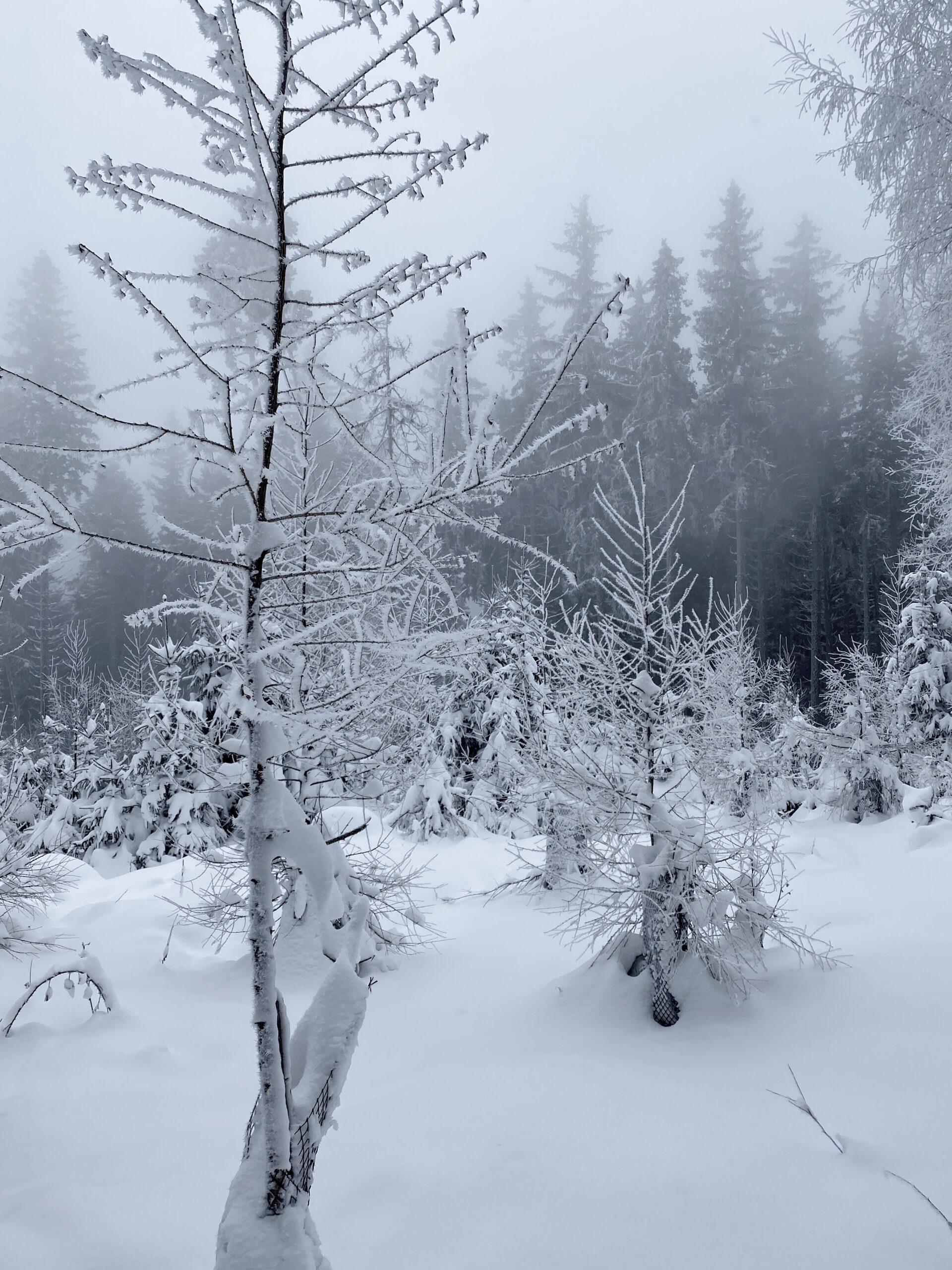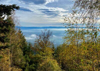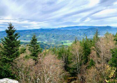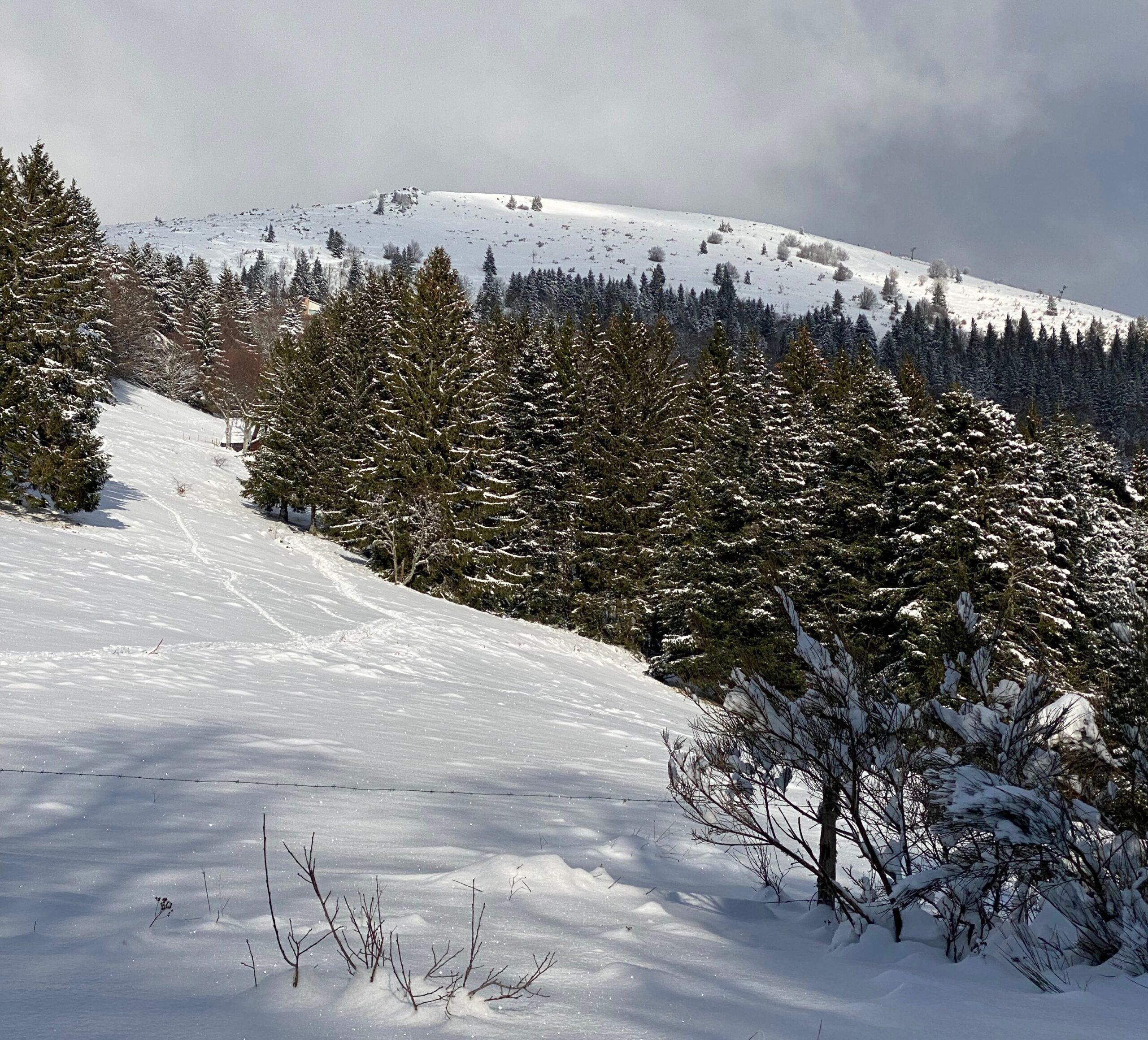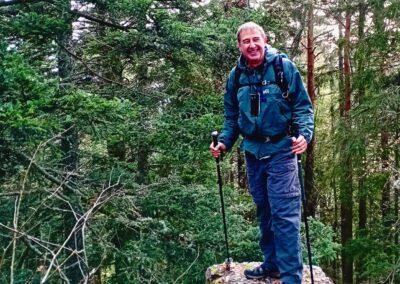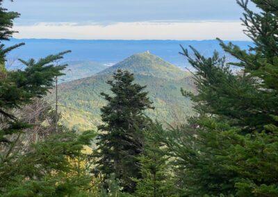 Dommage que la vue depuis ce sommet ait été embrumée et nous ait privé de la magnifique succession par vagues de crêtes habillées d’épicéas.