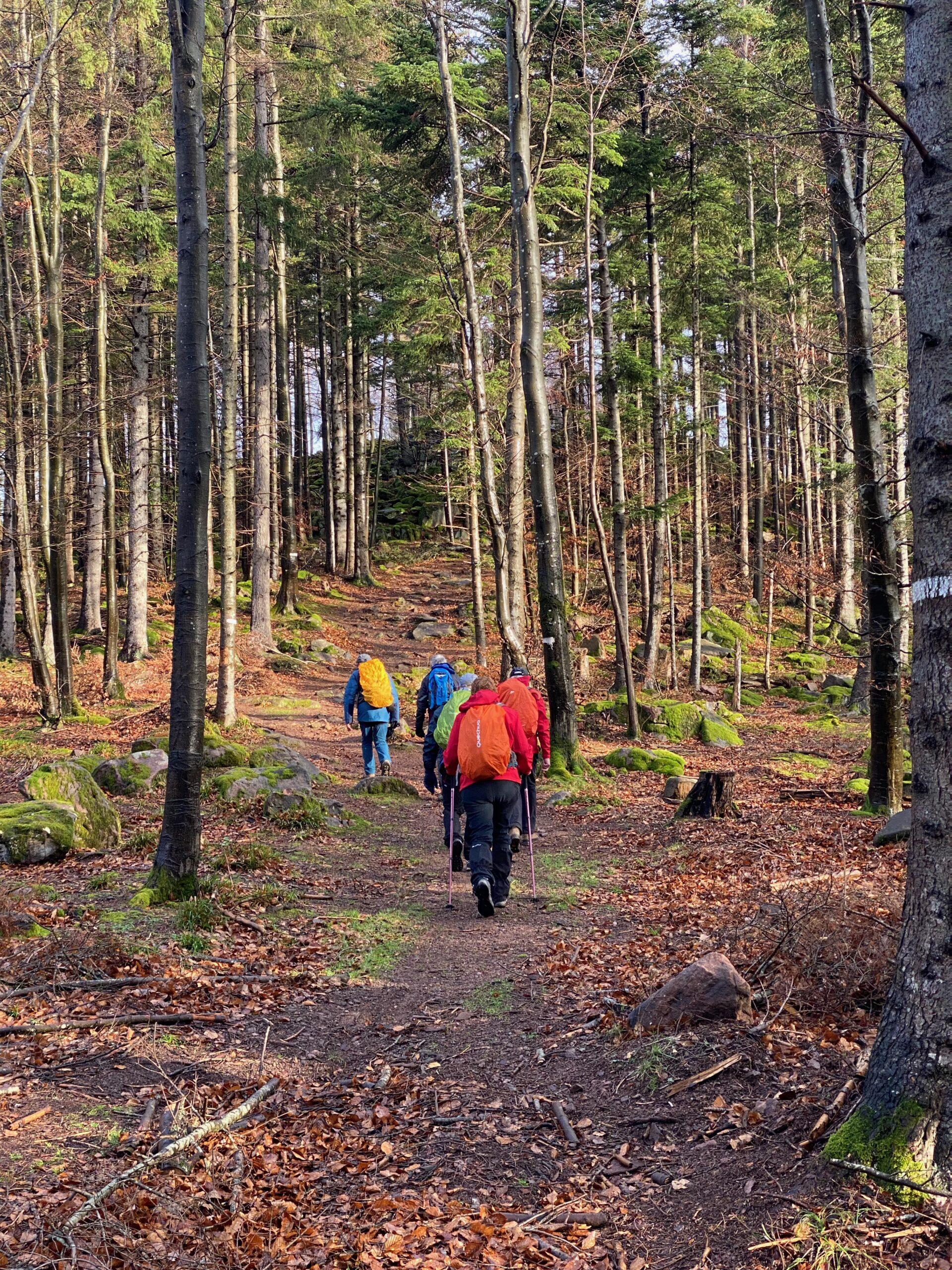 Finalement le froid qui nous habitait encore à ce moment là a été vaincu par un bon raidillon de 15mn et 100m de D+ vers le Donnenberg avant de redescendre vers Eigenthal départ de cette randonnée en boucle.