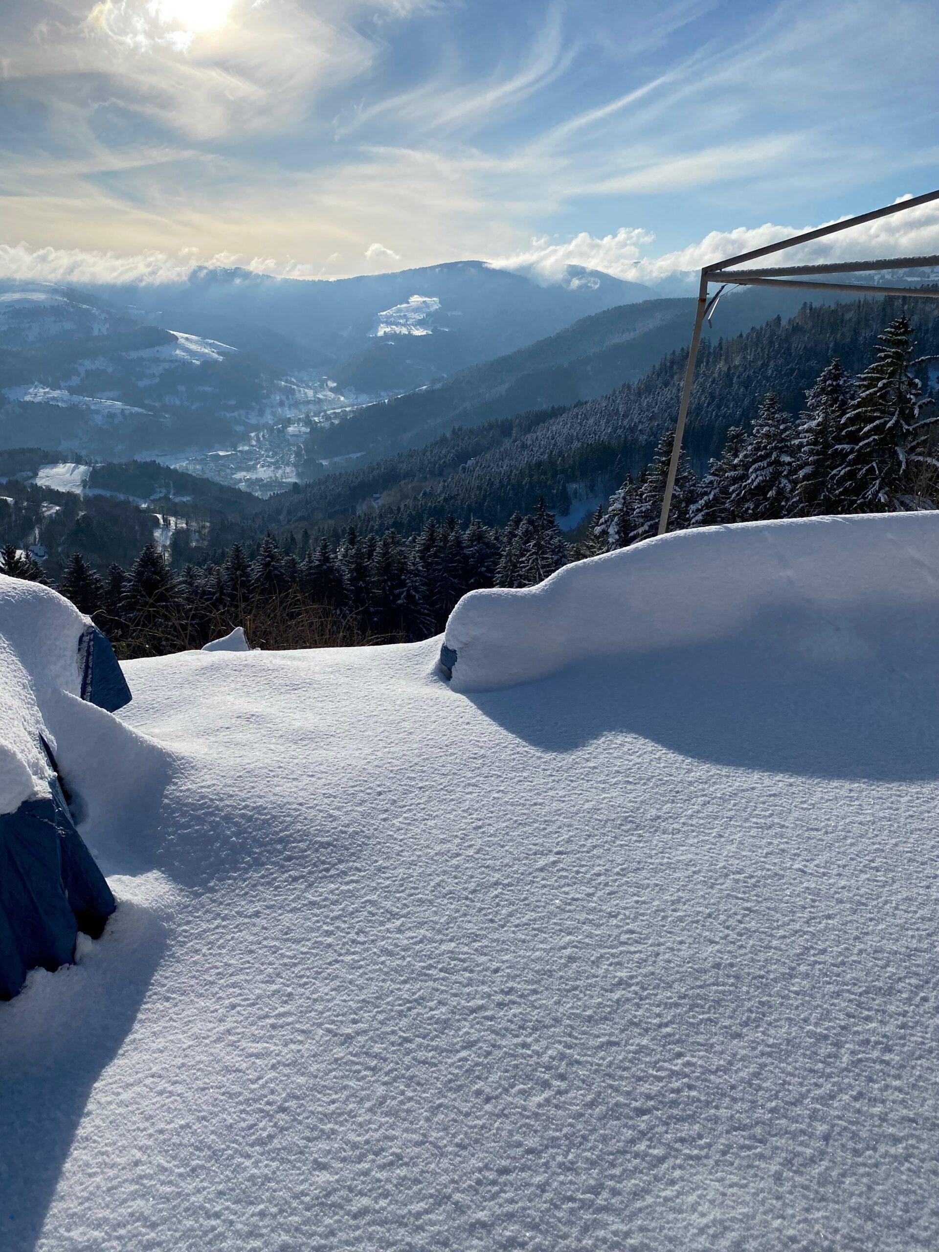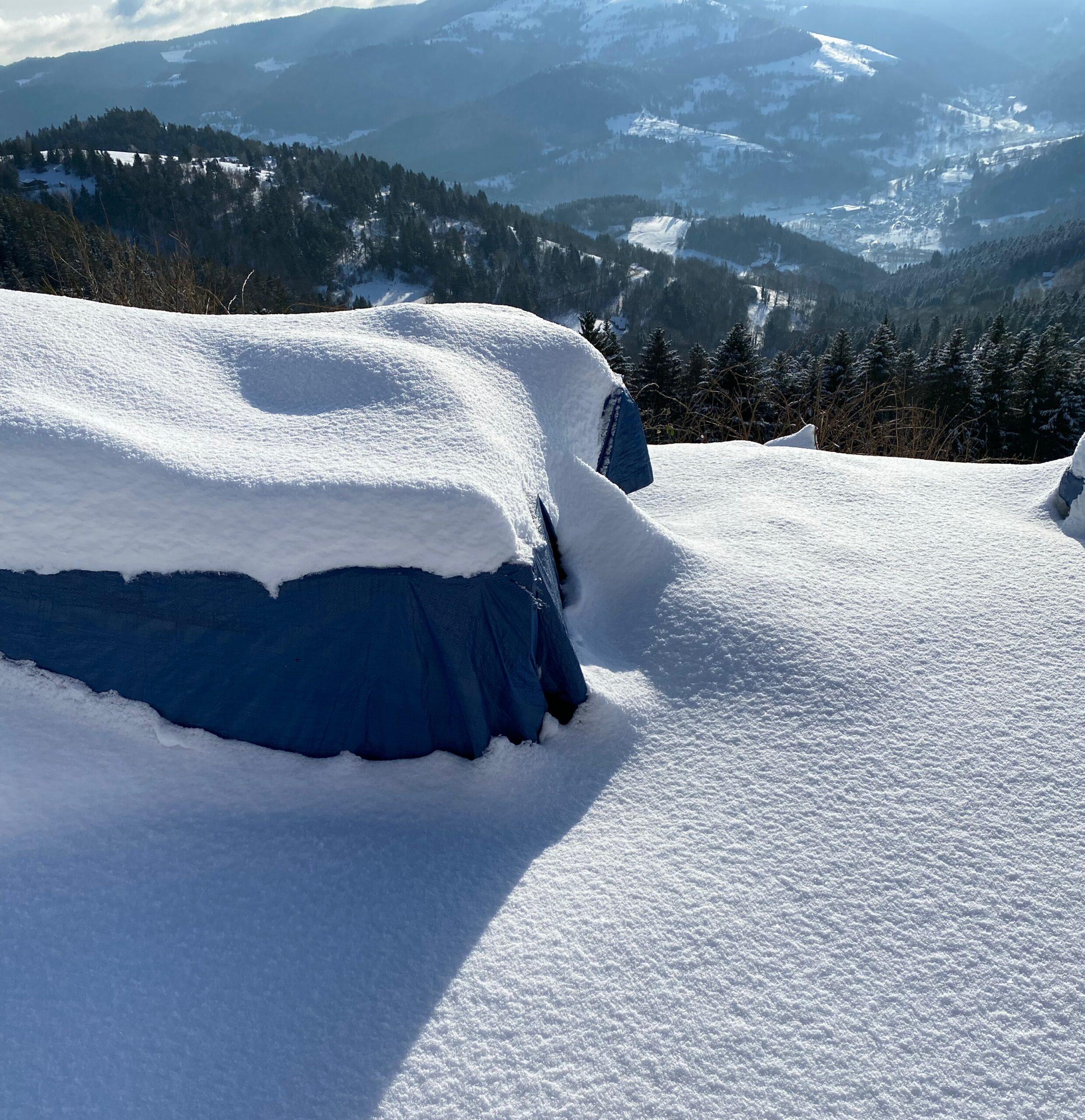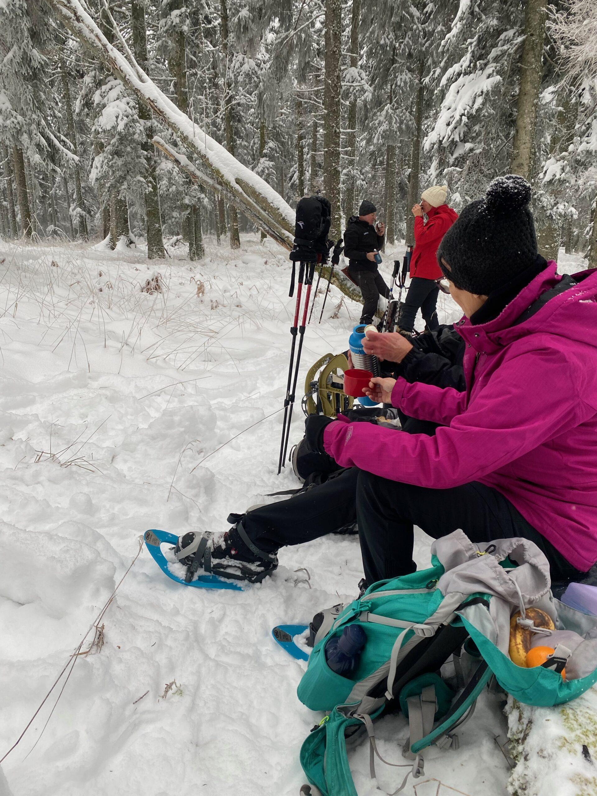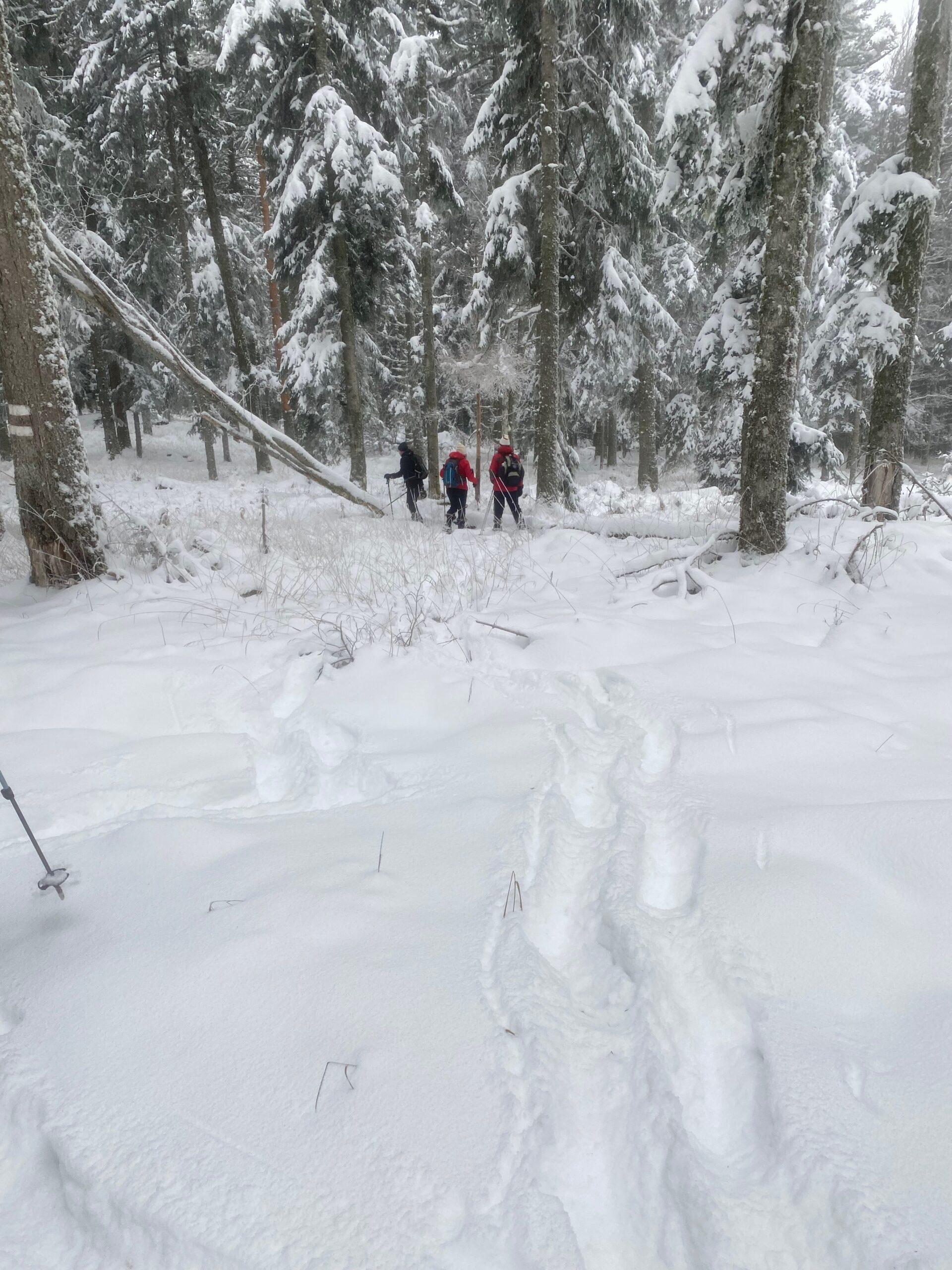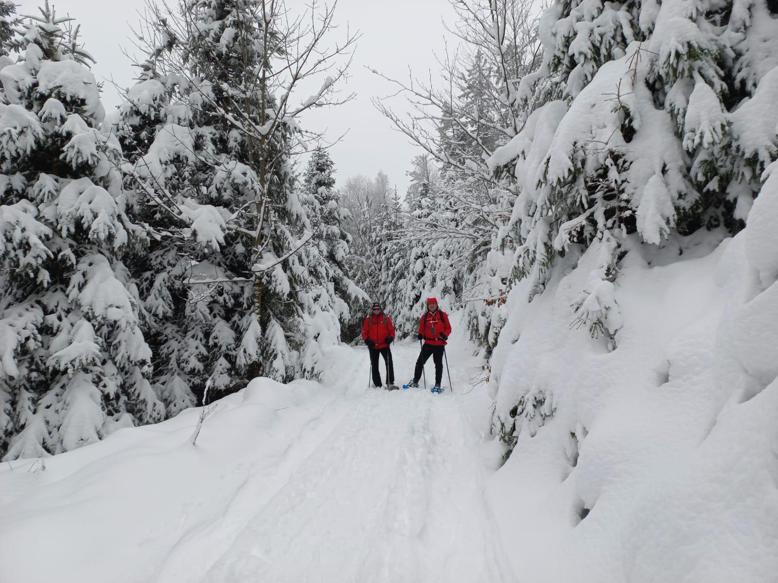 La descente vers la gare du petit train d’Abreschwiller, qui nous aura permis de nous asseoir à l’abri, pour un casse-croûte express que ni les soupes chaudes ni le délicieux rhum arrangé de Jean-Claude n’auront réussi à nous réchauffer !