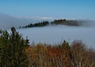 La montée se fait dans un épais brouillard. Mais nous avons espoir, les prévisions météo sont plutôt optimistes et nous entrevoyons de temps en temps des zones de ciel bleu à mesure que nous approchons du grand Wintersberg.