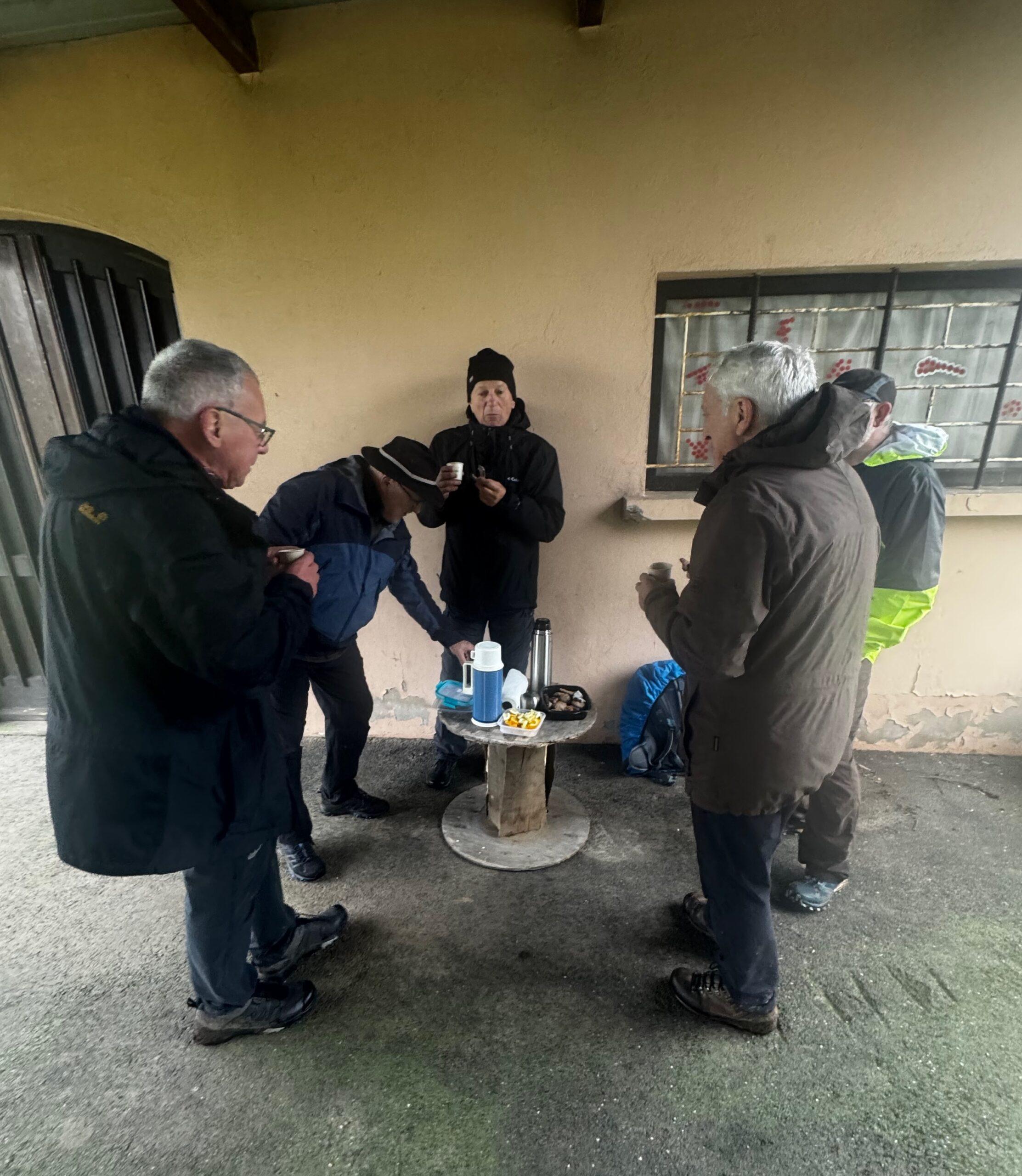 La sortie s’est terminée autour d’un verre (plusieurs en fait) de vin chaud à l’abri du bâtiment du stade de foot de la Petite Pierre de l’averse qui a attendu que nous soyons arrivés à destination pour se déclencher.