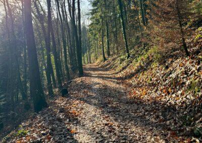 De chemins forestiers en sentiers, cheminant sur les points culminants de la forêt de Dabo, nous avons traversé le Sandplatz (place de sable), le Hengst (L’étalon) pour atteindre notre abri de pause près de l’ancienne Maison Forestière du Spitzberg.