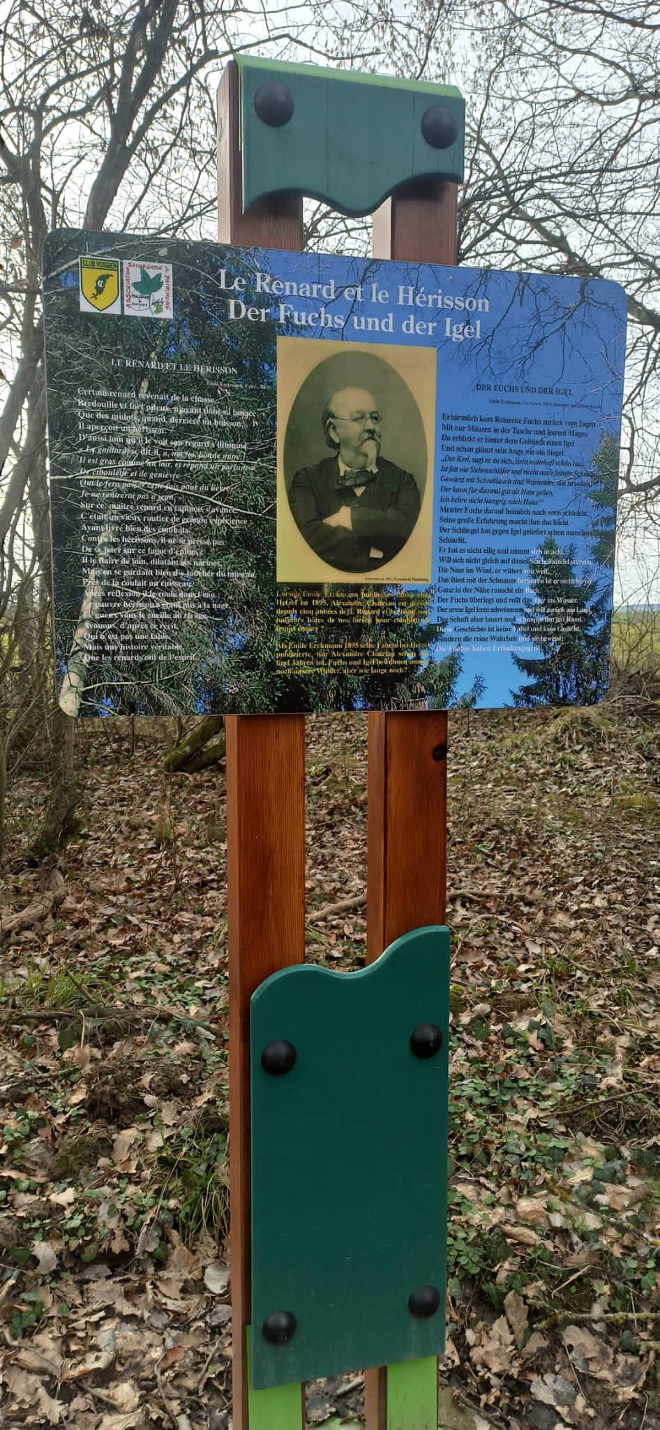 - les sculptures sur grès retraçant quelques contes d’Erckmann Chatrian, célèbres romanciers régionaux du pays de Phalsbourg.