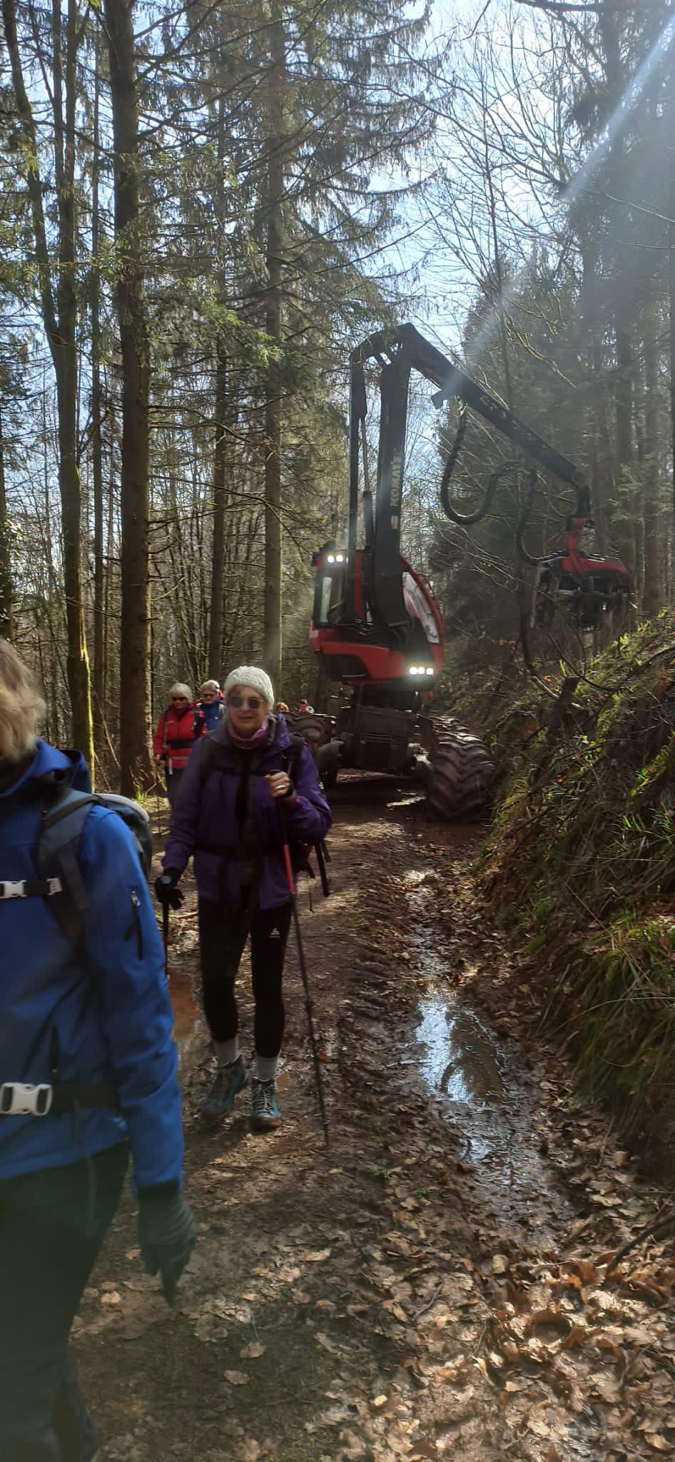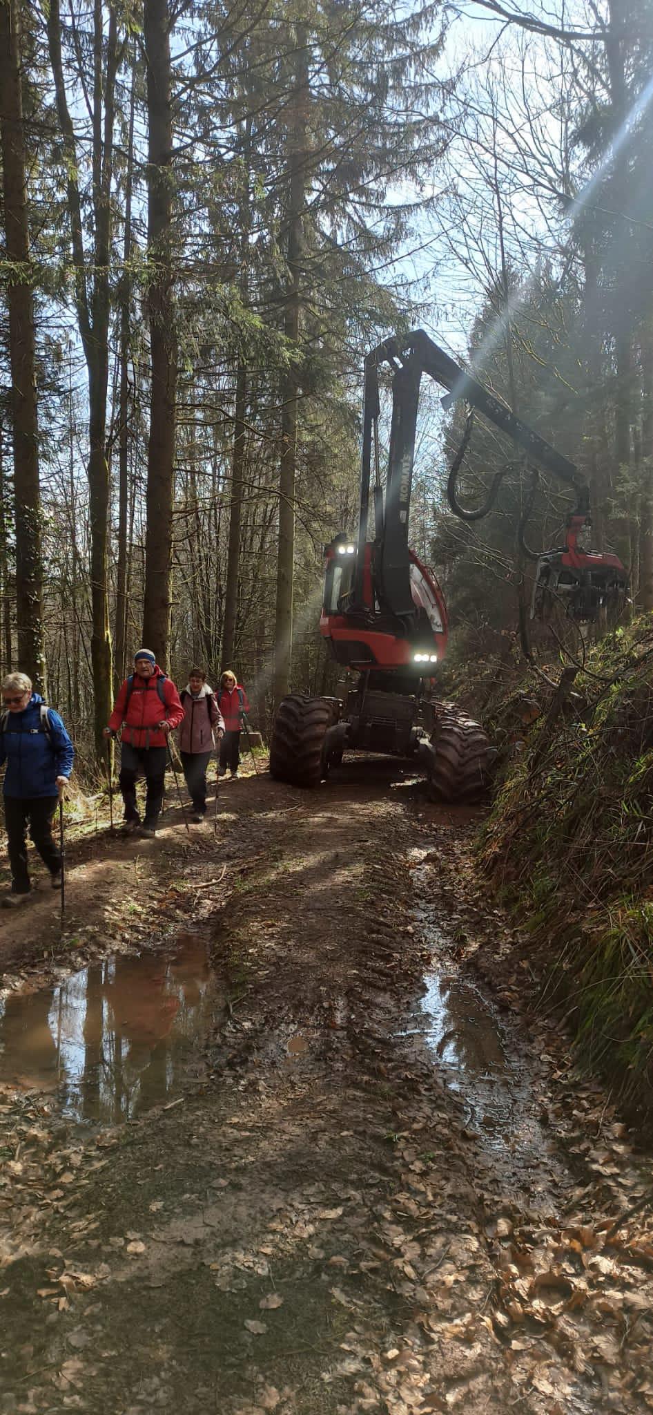- le travail d’une abatteuse croisée sur notre parcours et qui a impressionnée le groupe en témoignant en direct du caractère quasi industriel de la gestion de la forêt ;
