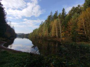 En découvrant ces paysages forestiers lumineux au bord du lac de Pierre Percée, on se croit volontiers dans des contrées bien plus lointaines. Dans les bois de la forêt des Elieux, le mélange des essences offre des panoramas sublimes, en transparence, vers les nombreuses anses du lac artificiel créé dans les années 80 par EDF. Ce lac à la forme d’une feuille d’érable et la coloration automnale nous fera bien sûr penser au Canada.